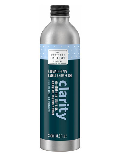 Aromatherapy Bath & Shower Gel Clarity är en lugnande duschgel med mjölksyraboostad formula. Berikad med Epsom-salter som förnyar och återupplivar huden samt en blandning av lugnande muskatellsalvia, citrongräs, bergamott och vetiver eteriska oljor. Ger en aromatisk upplevelse för både kropp och själ.
