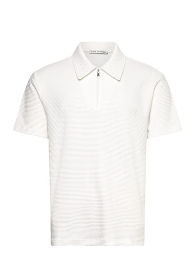 Denna pikétröja har en texturerad stickning och en kvart dragkedja, vilket ger en modern twist till en klassisk design. De korta ärmarna och den strukturerade kragen bidrar till dess raffinerade men avslappnade utseende, vilket gör den till ett mångsidigt tillskott till varje garderob.