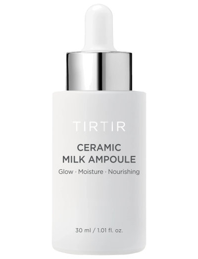 TIRTIR Ceramic Milk Ampoule är ett näringsrikt, återfuktande serum berikat med naturliga ingredienser som skvalan och riskliextrakt för att ge djup återfuktning och en strålande hud.
