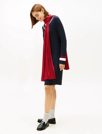 Denna scarf är tillverkad av lätt silke och känns mjuk och lyxig. Den böljande designen har subtila kedjedetaljer som ger en touch av diskret elegans till varje ensemble.