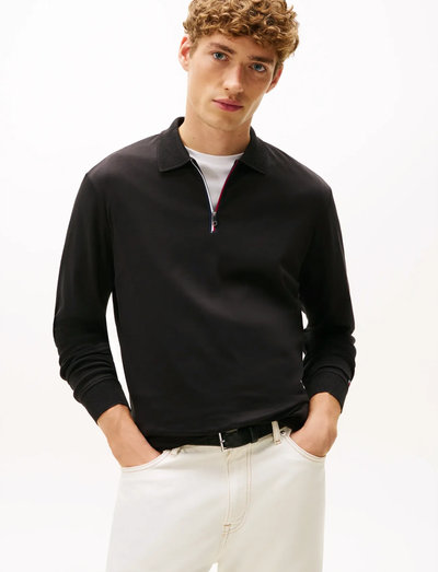Denna långärmade pikétröja har en kvart dragkedja, vilket ger en modern twist till en klassisk design. Interlock-stickningen ger en mjuk och bekväm känsla, vilket gör den idealisk för mångsidig användning.