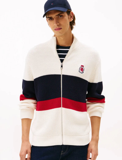 En full-zip framtill ger mångsidighet till denna ribbstickade tröja. Bröstbanddesignen ger en sportig och iögonfallande look. Bär den som ett lätt lager eller ensam för ett stilfullt uttryck.