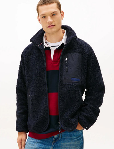 Denna fleecejacka med dragkedja erbjuder värme och en distinkt textur, vilket gör den till ett bekvämt lagerplagg. Den har en full dragkedja, en hög halsringning och en patchficka på bröstet, vilket kombinerar praktisk användning med en mjuk och taktil känsla.
