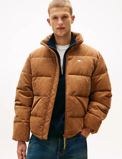 Denna pufferjacka i manchester ger värme och en distinkt texturerad look. Den förlängda längden ger extra täckning, medan den höga kragen bidrar till den mysiga känslan.