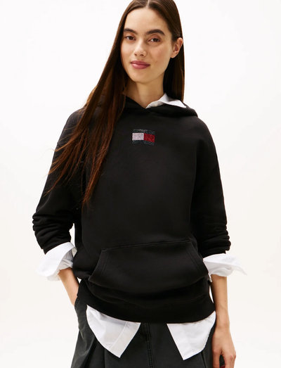 En klassisk hoodie får en stilfull uppdatering med en subtil logga på bröstet. Denna bekväma sweatshirt har en huva med dragsko och en känguruficka, perfekt för vardagsbruk.