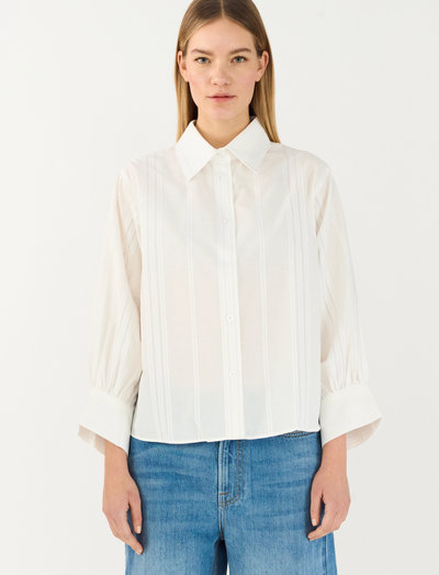hepburn-skjortan i upscale white är en raffinerad men enkel version av den klassiska vita skjortan. den är tillverkad i en mjuk men krispig tygblandning och ger en ren, polerad look med en modern känsla. designen är diskret, perfekt för dig som uppskattar tidlös stil med en modern twist.med voluminösa ärmar och höga manschetter har hepburn-skjortan precis rätt mängd detaljer för att sticka ut samtidigt som den behåller sin eleganta enkelhet. de fina knapparna fulländar looken och gör den till ett mångsidigt val för alla tillfällen.storlek & passform:- lös passformproduktdetaljer:- långa, voluminösa ärmar- höga manschetter- klassiska knappar