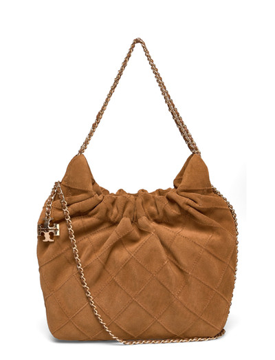 Denna hobo-väska är tillverkad av mjuk mocka och har en distinkt diamantstickad design. Den är avslutad med en delikat kedjerem och en signaturlogotyp. Den rynkade toppen ger en touch av avslappnad elegans.