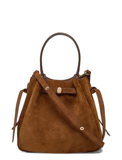 Denna bucket bag är tillverkad av smidig mocka och har en justerbar crossbody-rem för mångsidig användning. Designen kompletteras med ett topphandtag och dragsko, vilket ger både stil och praktisk användning.