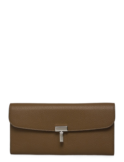 Denna plånbok har en distinkt T-lås stängning och erbjuder ett säkert och stilfullt sätt att bära dina väsentligheter. Det narvade lädret ger en taktil och sofistikerad känsla.