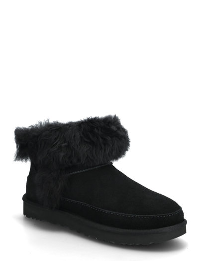 Dessa korta stövlar ger en uppdaterad version av en klassisk silhuett, inspirerad av bergsstäder. Designen har ett skaft som är trimmat med fluffigt fårskinn, vilket ger en mysig touch. De är tillverkade av rik mocka och är placerade på en lätt yttersula av sockerrörs-EVA, och inuti är de fodrade med mjuk UGGplush™ tillverkad av återvunnen ull, vilket ger enastående värme.