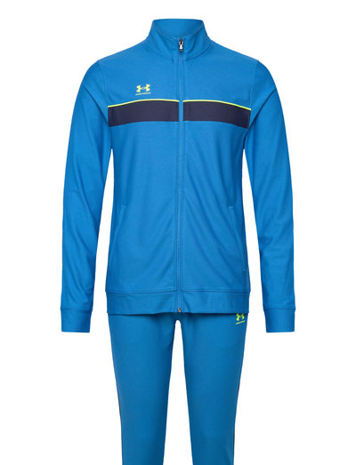 Denna träningsoverall erbjuder full rörelsefrihet, vilket gör den idealisk för uppvärmning eller nedvarvning. Jackan har en full dragkedja framtill för enkel på- och avtagning, medan byxorna har en bekväm, avsmalnande passform.