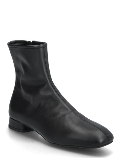 Denna ankelstövel är tillverkad i smidigt läder och har en rund tå samt en praktisk dragkedja på insidan. Den lätta och flexibla gummisulan säkerställer bekväm och halkfri användning. Ett mångsidigt och tidlöst tillskott till varje garderob.