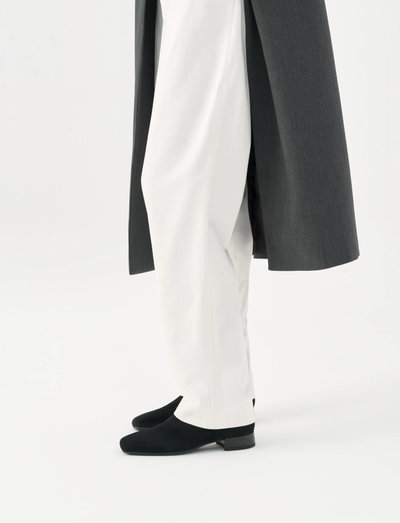 Dessa ankelstövlar är tillverkade i mjuk, svart mocka och har en minimalistisk design. Den moderna, fyrkantiga tån och dragkedjan i sidan kompletteras av en diskret, dekorativ söm. En låg klack fulländar designen.