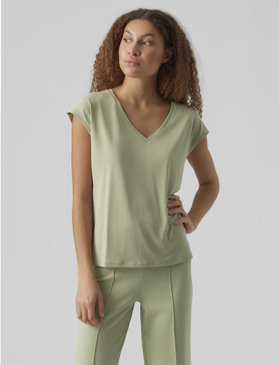 Denna V-ringade T-shirt är ett tidlöst val för vardagsbruk och erbjuder en avslappnad passform för ultimat komfort. De korta ärmarna och den enkla designen gör den till ett mångsidigt tillskott till vilken garderob som helst. Kombinera den med dina favoritjeans eller klä upp den med en kjol för en avslappnat snygg look.