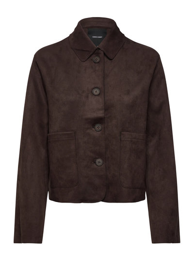 Denna jacka är tillverkad av mjukt fuskmocka och har en stängning med fyra knappar och två framfickor. Den långärmade designen gör den till ett mångsidigt lagerplagg.