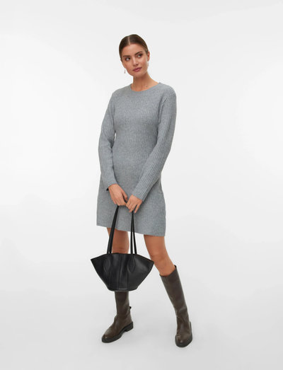 En stickad klänning erbjuder oöverträffad komfort. Denna korta modell är en klassisk garderobsfavorit för kallare dagar. Bär den med strumpbyxor och chunky boots för en modern vardagslook, eller lägg till accessoarer för att förvandla den till en festligare outfit. Den har långa ärmar och en rund hals.
