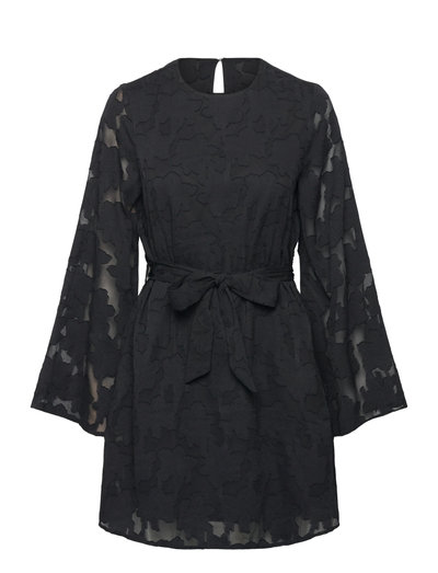 Denna korta klänning definieras av en ledig stil, vilket gör den till ett perfekt vardagsalternativ. Designen har långa, vida ärmar och en smickrande rund halsringning. Den knäpps med en knapp och ögla och har en bekväm, normal passform som enkelt kan kläs upp eller ner.