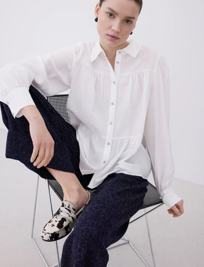 Denna långärmade skjorta är tillverkad av lätt viskos och har en mjuk känsla och en glansig finish. Med knappfästning och klassisk skjortkrage är det ett mångsidigt val för alla tillfällen, designad i en normal passform.