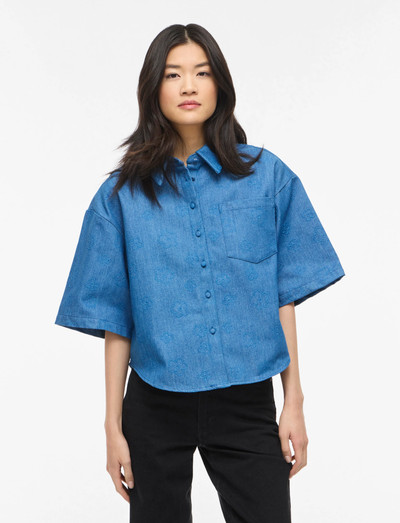 Denna kortärmade skjorta är tillverkad i en klassisk denimlook och har en knappstängning framtill samt en bröstficka för extra användbarhet. Den avslappnade passformen gör den idealisk för lager-på-lager eller att bäras som den är.