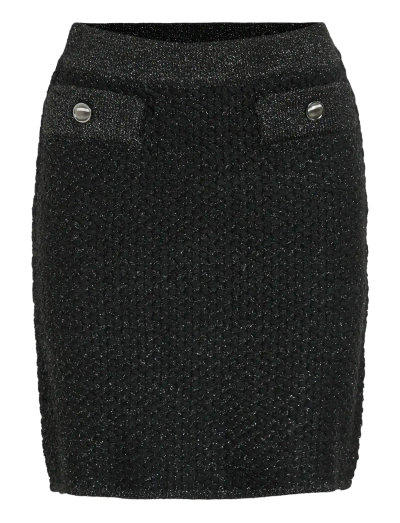 Denna stickade kjol har ett texturerat bouclé-garn som ger en mjuk och tidlös känsla. Midjehög modell med glitterdetaljer och icke-funktionella framfickor som ger en extra touch.