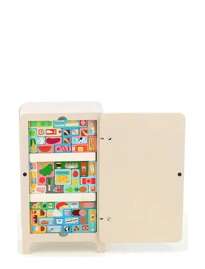 Refrigerator and logic game in one. The fridge can be opened and contains a whole lot of food. Be careful, because once they are unpacked, you have to think logically to make room for all the food again.Avoid driving too many moving loads and see how much furniture will fit in the trailer. Whoever finds room for it all can call himself a Master Mover!Illustrated by Ingela P Arrhenius.Contents: 1 x wooden truck, 19 x illustrated wooden blocks.