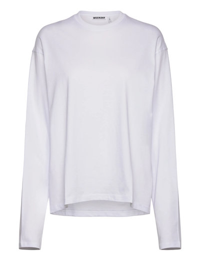 En långärmad t-shirt i mjuk bomullsjersey med en lös, boxig passform. Den har en rund ribbad halsringning och en rak nederkant.