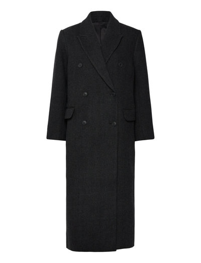 An oversized double-breasted coat crafted from a warm wool-blend for ultimate comfort. Featuring a V-neck lapel collar with a collar stand, padded shoulders, and both decorative and functional front buttons. With double jetted pockets, an inner pocket, and a high back vent for ease of movement, it’s designed for both style and functionality, making it perfect for the colder months.