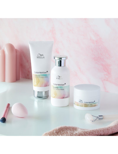 Wella Professionals ColorMotion+ Color Reflection Conditioner är ett återfuktande balsam för färgat hår. Detta Wella Professionals balsam innehåller extra antioxidanter som förbättrar skyddet mot fria radikaler för att säkerställa kvalitet på tre områden: färgskydd, livfull glans och starkare hår. ColorMotion+ är även berikat med WellaPlex+ bindningsmedel som stärker håret genom att återuppbygga hårbindningarna efter färgning. Finns i två storlekar: 30 ml och 200 ml. Din rutin för färgskydd för skadat färgbehandlat hår.