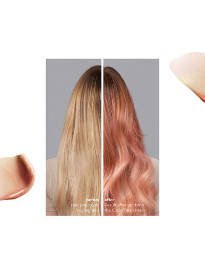 Wella Professionals Peach Blush Color Fresh Mask är en färginpackning och glansbehandling som inte skadar håret och som är utformad för att bevara, förvandla eller förstärka din salongsfärg. Peach Blush är perfekt för förblekta och ljusare toner eftersom den ger strålande värme till blont hår. Den temporära färgmasken bleknar gradvis och de rika vårdande ingredienserna i formulan gör att håret känns mjukt och återfuktat, så det finns inget behov av att använda ett balsam. Behandlingen för hemmabruk är utformad för användning en gång i veckan med synliga resultat på 10 minuter. Wella Color Fresh Mask är berikad med avokadoolja och framtagen utan animaliska ingredienser och silikoner.