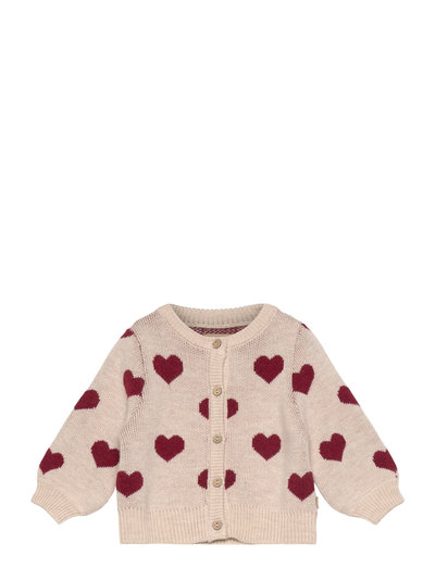Long-sleeved knit cardigan in soft merino wool for babies. - Regular/loose fit- Buttons down the front- Rib at the neckline, cuffs and bottom hem- Knitted heart patternWheat's knitwear is a true essential during the everchanging seasons, as it is soft and comfortable for your child to wear without any kind of itchiness. Our knitted cardigans have a classic look with a relaxed fit that make them easy to style with a pair of trouser, a body or over a dress depending on the weather and occasion.---- Standard 100 by OEKO-TEX®- 100% Merino wool