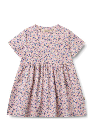 Short-sleeved jersey dress with print in soft organic cotton for children.- Loose/oversized fit- Length: Above knees- Cutline above the waist with gatherings below- Signature print Soft, airy, and effortlessly comfortableour jersey dresses are a true summer essential. Designed for easy movement and all-day wear, they have a relaxed fit that makes them perfect for play, adventures, and special occasions alike. Whether styled with sandals for a breezy summer look or layered with leggings and a knit on cooler days, this dress is a versatile favourite for every little wardrobe.---- Standard 100 by OEKO-TEX®- 95% Organic cotton, 5% Elastane- The product is GOTS certified