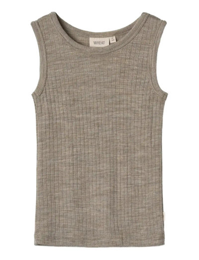 AntibakteriellWheatSinglet in soft merino wool/ silk jersey for the junior child. - Regular fit- Wide strapsWheats wool wear is specially designed to keep your child warm in the cold weather, while still keeping them from overheating, as wool has the unique quality that it helps regulate body temperature. The wool styles are great for layering and soft on bare skin.Wheats soft singlet is an essential for the junior child, as it is perfect as pyjamas or underneath your childs everyday clothing. The top has a tank top look with wide straps and is in made in soft merino wool, which makes it comfortable for your child to wear. It is available in beautiful colours and sweet hand drawn prints, which are made by Wheats in-house design team.Composition- Standard 100 by OEKO-TEX®- 85% Merino wool, 15% silk