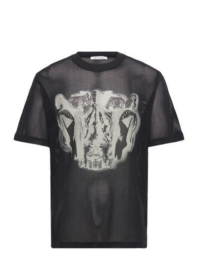 Denna kortärmade t-shirt har en ventilerande mesh-konstruktion som ger förbättrad ventilation. Den har en rund halsringning och ett djärvt grafiskt tryck på framsidan.