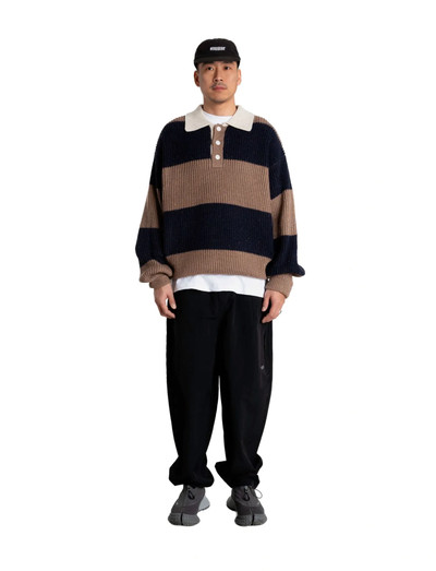 Denna stickade polotröja har en ribbad textur som ger en raffinerad look. Den är designad med en knappslå och en bekväm passform, vilket gör den till ett mångsidigt tillskott till varje garderob.