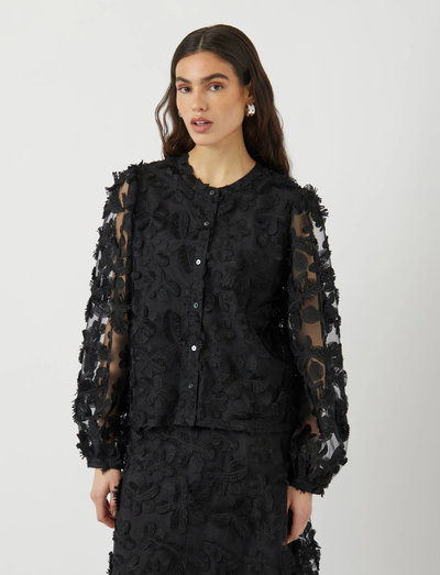 Denna långärmade skjorta är tillverkad av slitstark polyester och har en raffinerad kinakrage och knappstängning. 3D-detaljerna tillför ett unikt texturellt element, medan polyesterfodret säkerställer en slät, icke-transparent finish. Den är designad med en normal passform och är idealisk för lager-på-lager-looker för att skapa sofistikerade stilar.