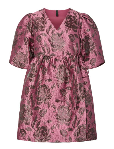 Denna klänning är tillverkad av vackert jacquardtyg och har mönster och texturer som ger en elegant look, perfekt för att klä upp sig och fira speciella tillfällen. Designen inkluderar en smickrande V-ringning, eleganta 2/4-ärmar och en omlottknäppning för att säkerställa en normal passform.